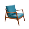 O assento conta com espuma de alta densidade revestida em tecido Acquablock na cor azul, um material resistente a líquidos e manchas, ideal para quem deseja manter a poltrona sempre bonita e fácil de limpar. Além disso, a espuma proporciona conforto prolongado, ideal para salas de estar, escritórios residenciais, recepções e varandas cobertas.